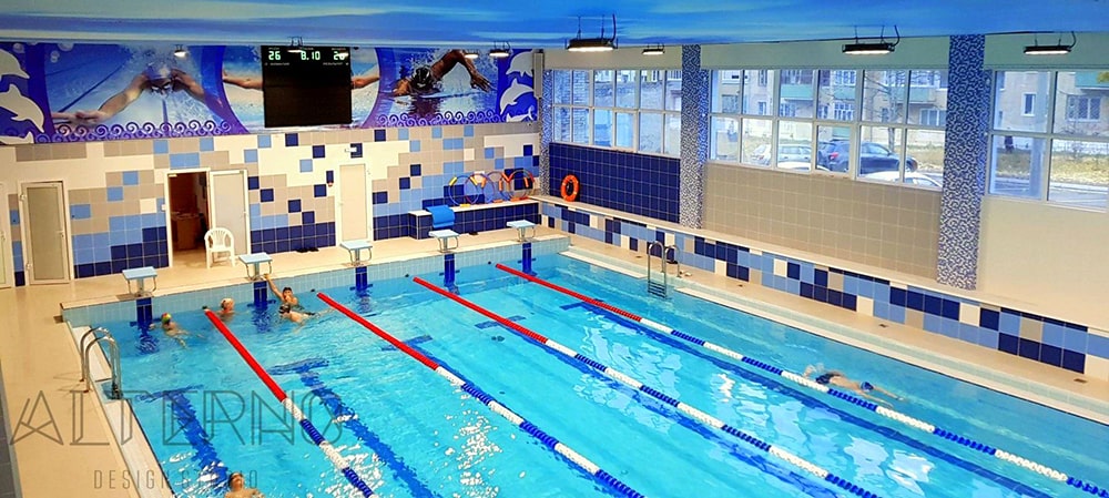 OPTOLUX был разработан световой проект на основе светодиодных прожекторов ip 66 80 Вт, 12000 лм с матовыми рассеивателями, которые позволили создать комфортный равномерный свет без бликов и пульсации. Прожекторы предназначены для использования в помещениях с повышенной влажностью и имеют цветовую температуру 5000 К, рекомендованную для крытых бассейнов.